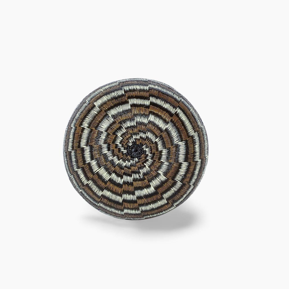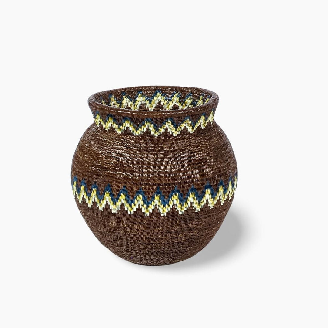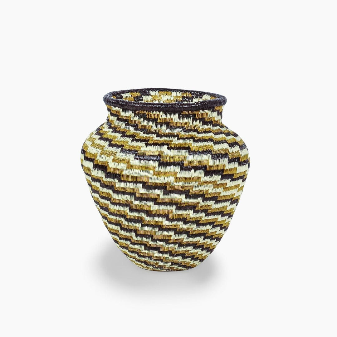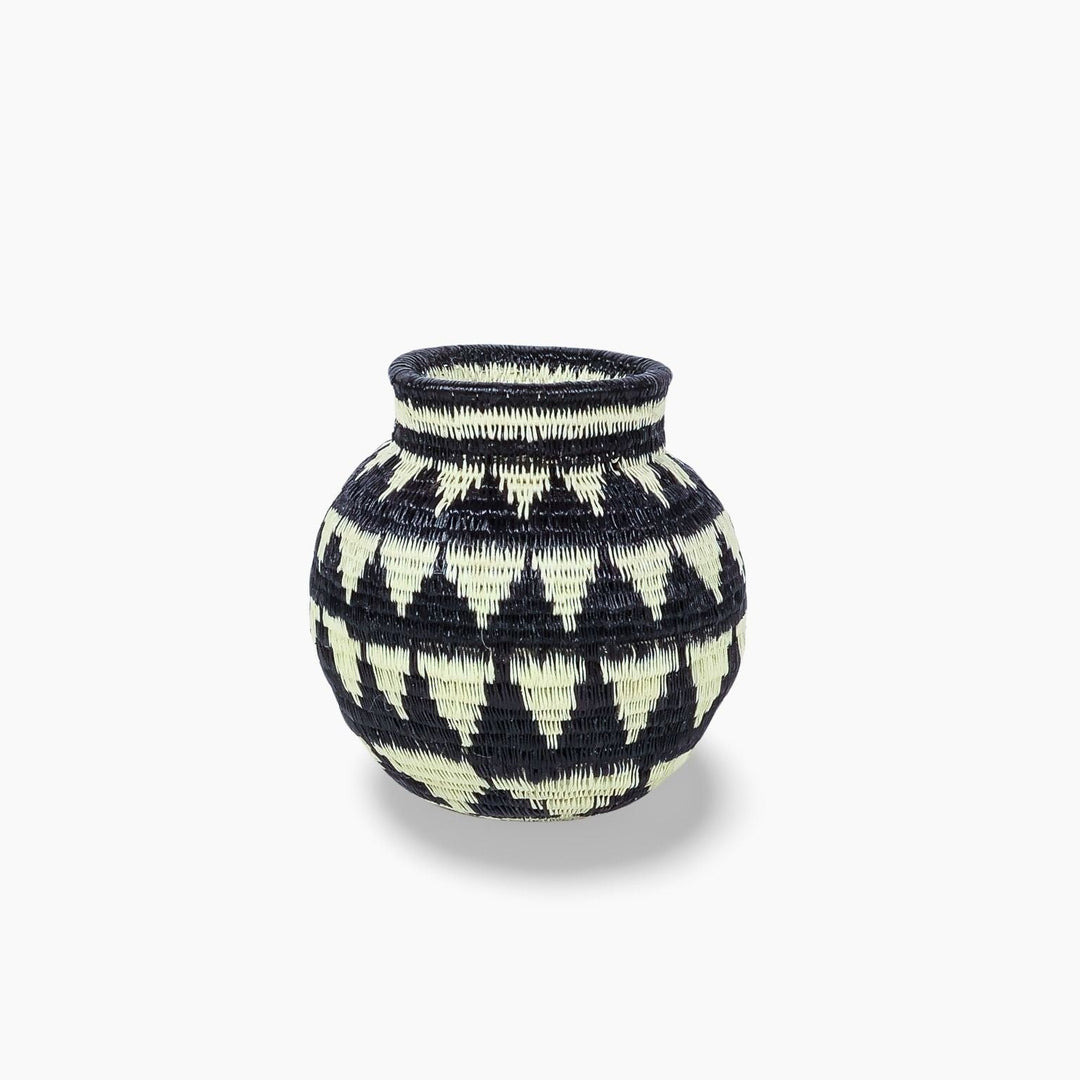 Geometric woven baskets are handmade art pieces created by Wounaan and Embera weavers of Panama and Colombia, and by artisan communities in Rwanda and Ghana. Each basket is formed from natural grasses or palm fibers, stitched or coiled into bold lines, spirals, and diamond motifs that trace back to ancestral body painting, spiritual symbolism, and community traditions.