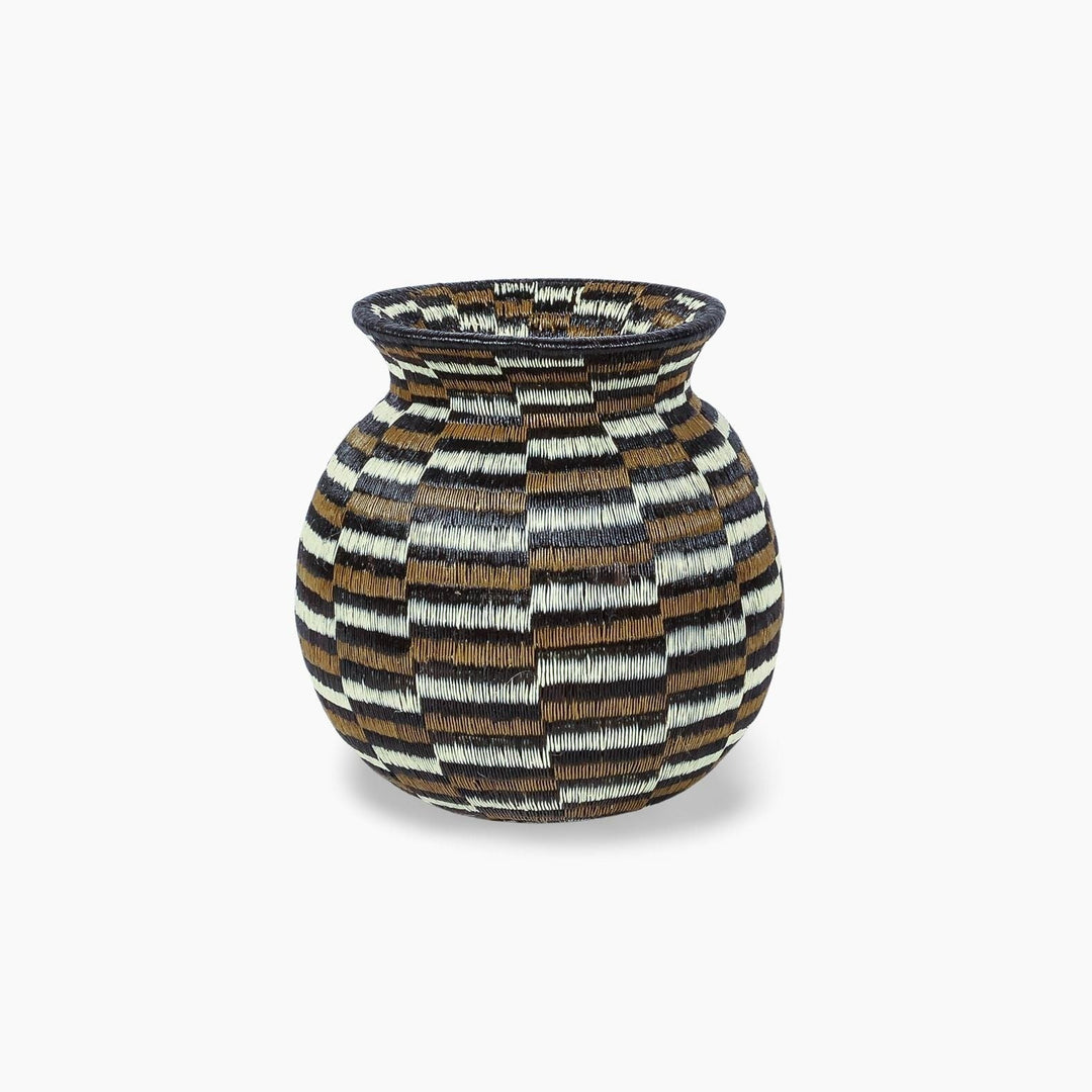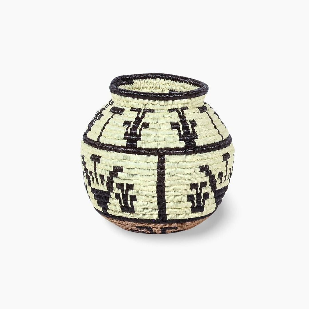 Wounaan and Embera baskets are woven from Werregue and Chunga palm fibers, dyed with natural pigments from seeds, roots, and fruits, sometimes accented with copper. Rwandan baskets are coiled with sisal wrapped around sweetgrass, creating graphic spirals. Ghanaian baskets are woven from elephant grass, known for its strength and sculptural form.