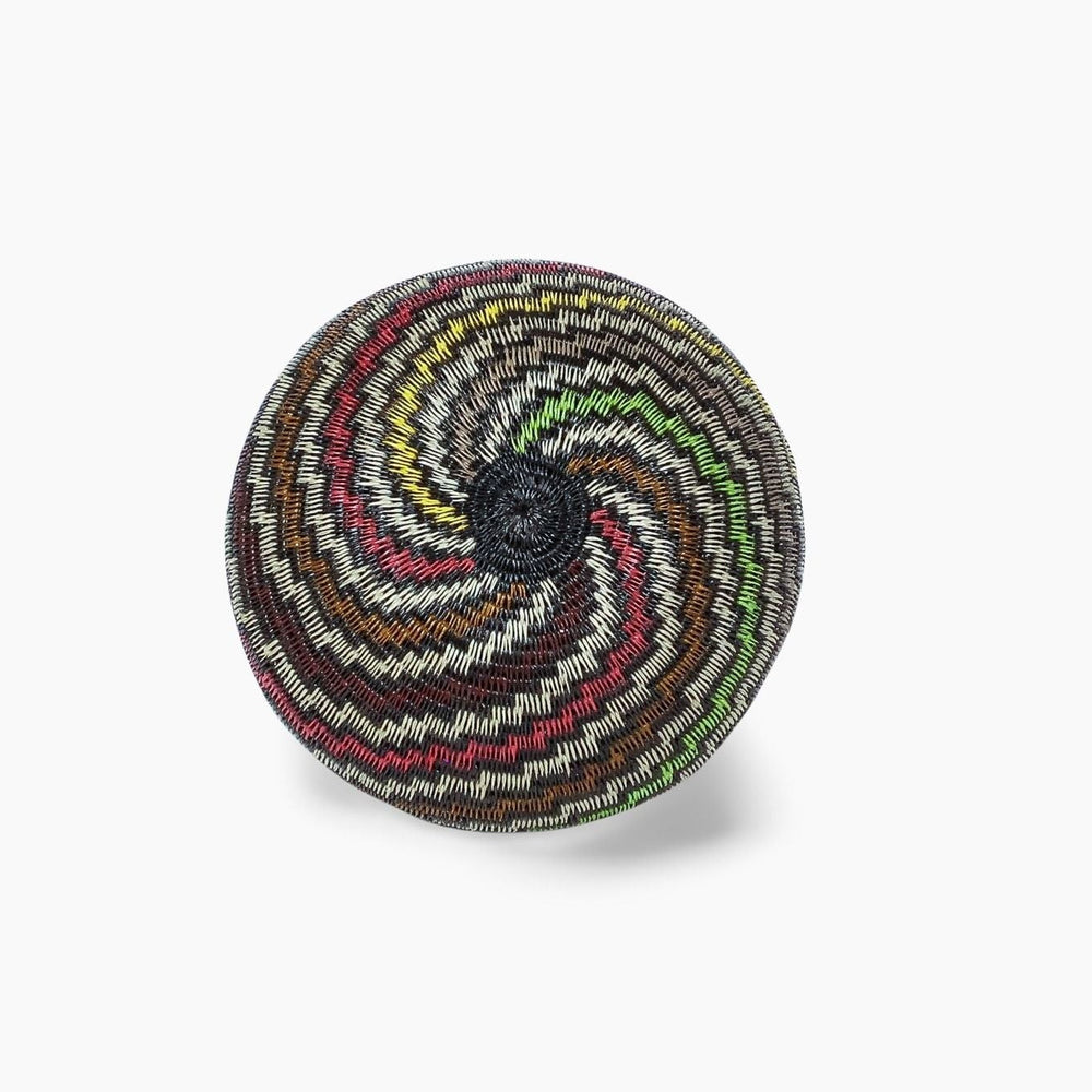 Rooted in ancestral body painting and spiritual symbolism, these baskets showcase the precision and rhythm of Wounaan and Embera weavers. Every line, spiral, and diamond shape is hand-stitched with palm fiber and natural dye—bold, balanced, and never basic.