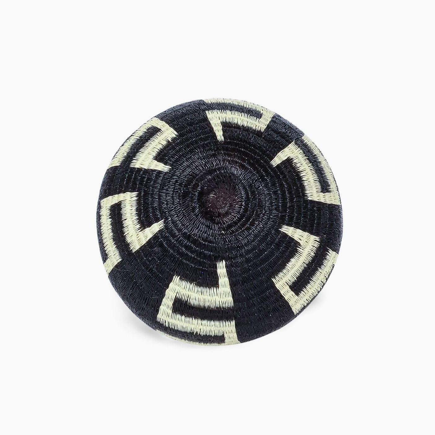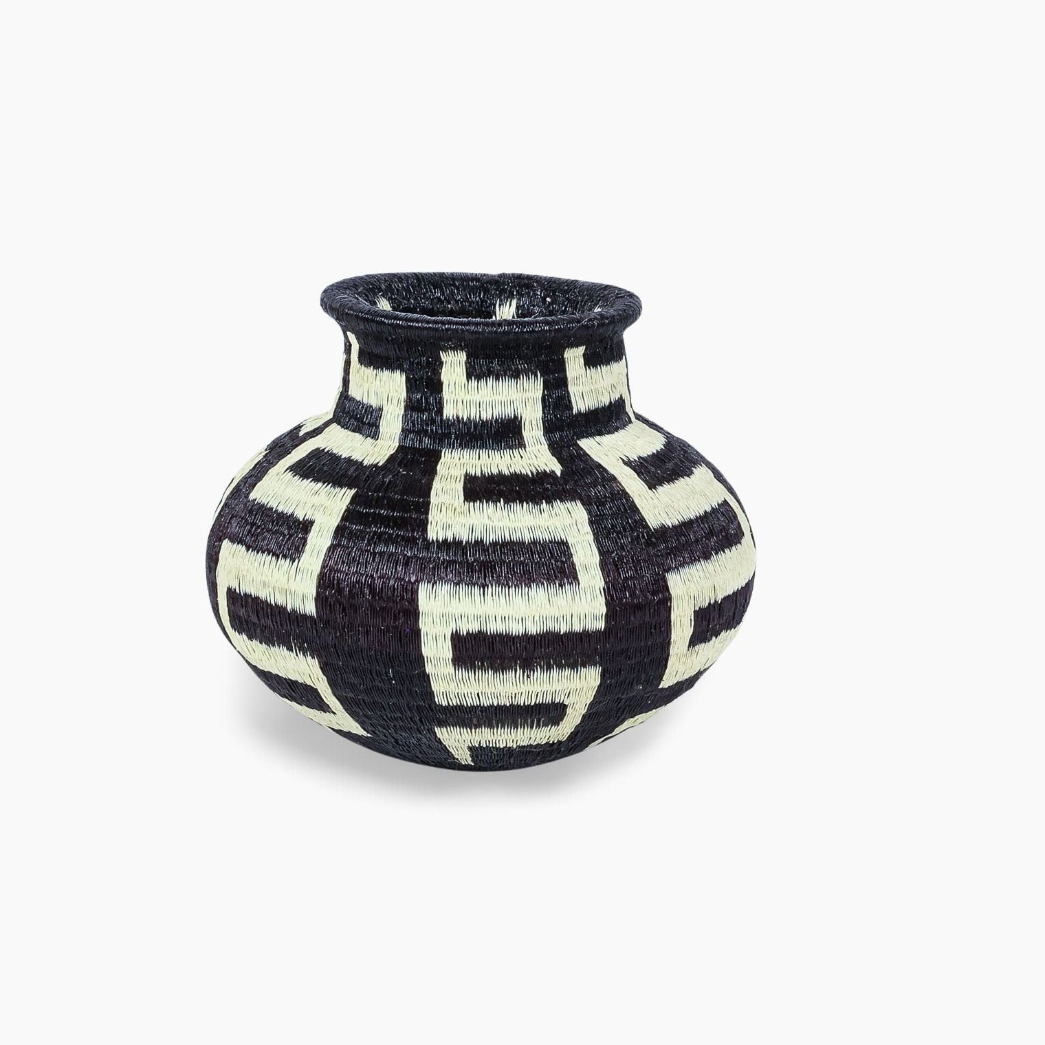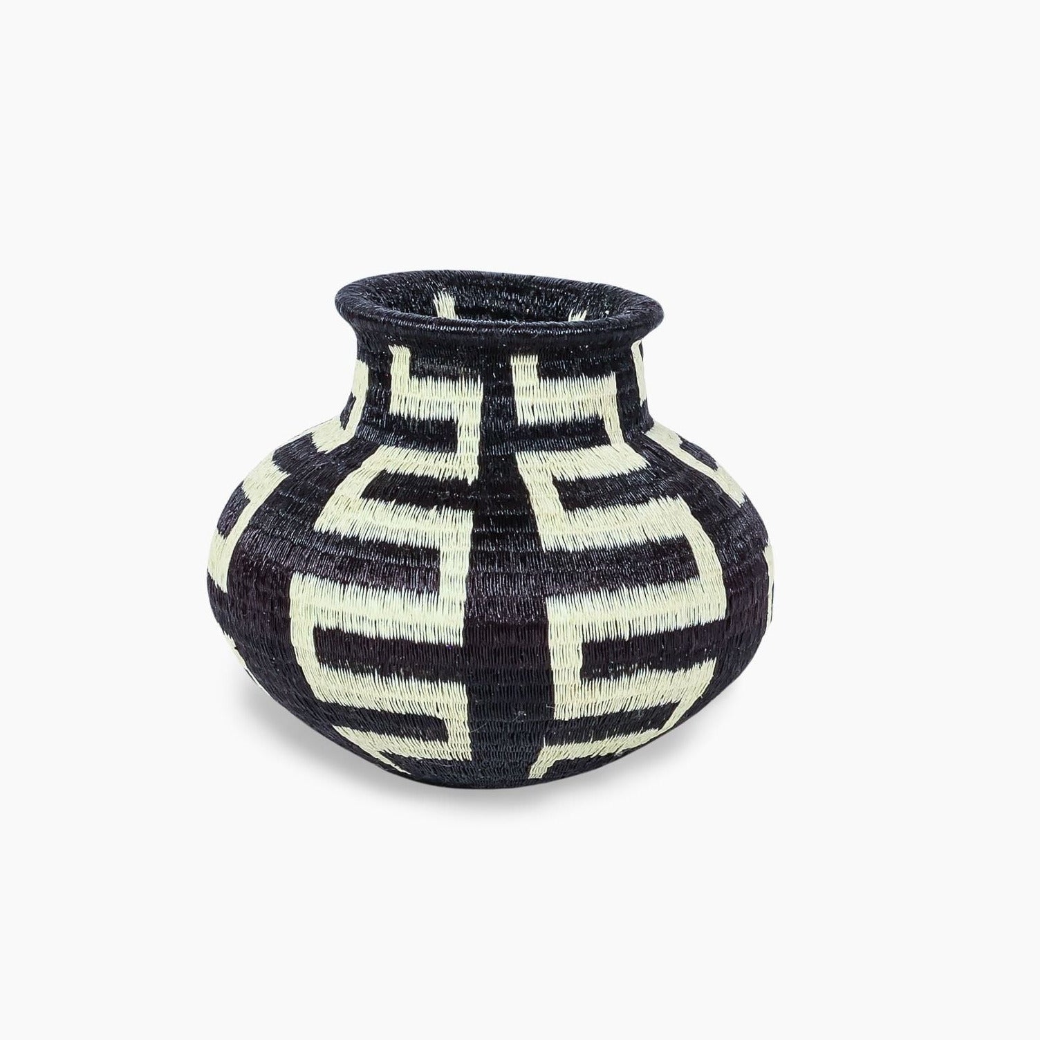 A strong central axis defines the pattern of this sculptural mini basket. The design balances symmetry with handwoven texture.
