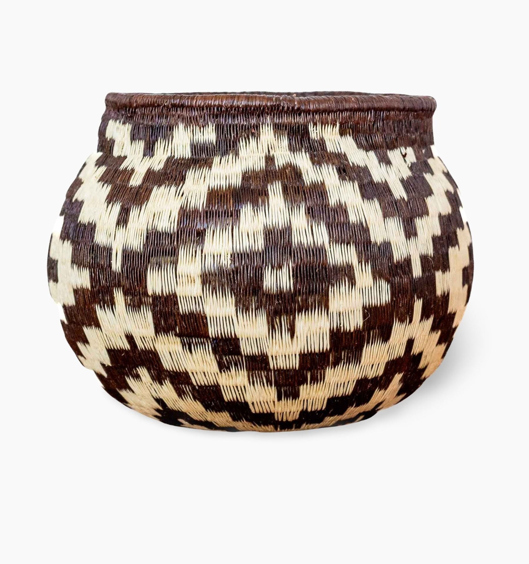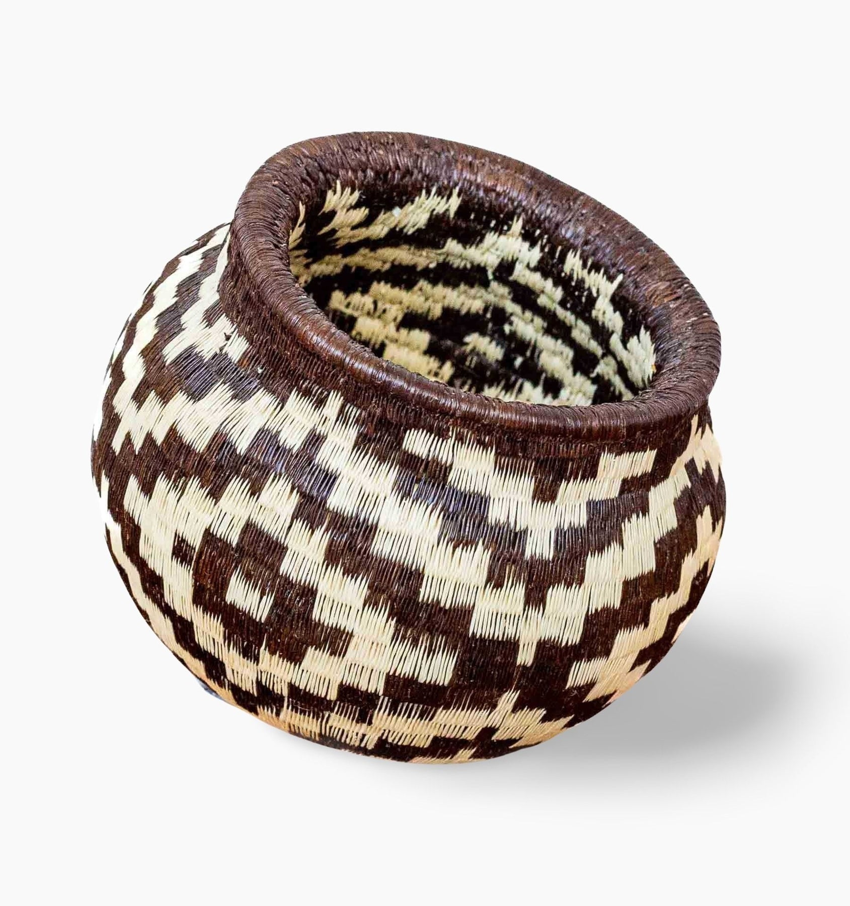 Inspired by the rainforest and by pre-Colombian body painting, each basket is a dialogue between tradition and the natural world. Weavers stitch with fine needles and the most supple fibers of the werregue and naguala palms—materials prepared, softened, and dyed with pigments drawn from seeds, roots, and leaves. Months, and often years, go into a single piece, each coil revealing echoes of ancient pottery, wild plant life, and the patient rhythm of hand and thread.