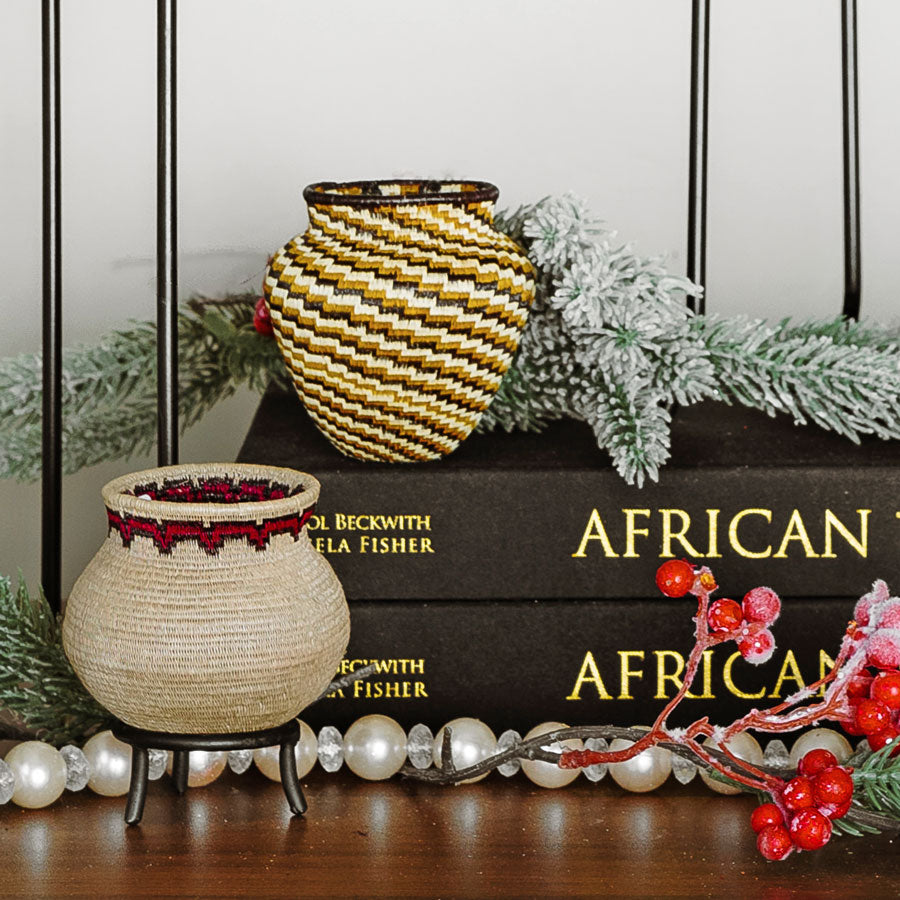 A striking accent for shelves or tabletop displays, each piece is fully handmade and one of a kind.