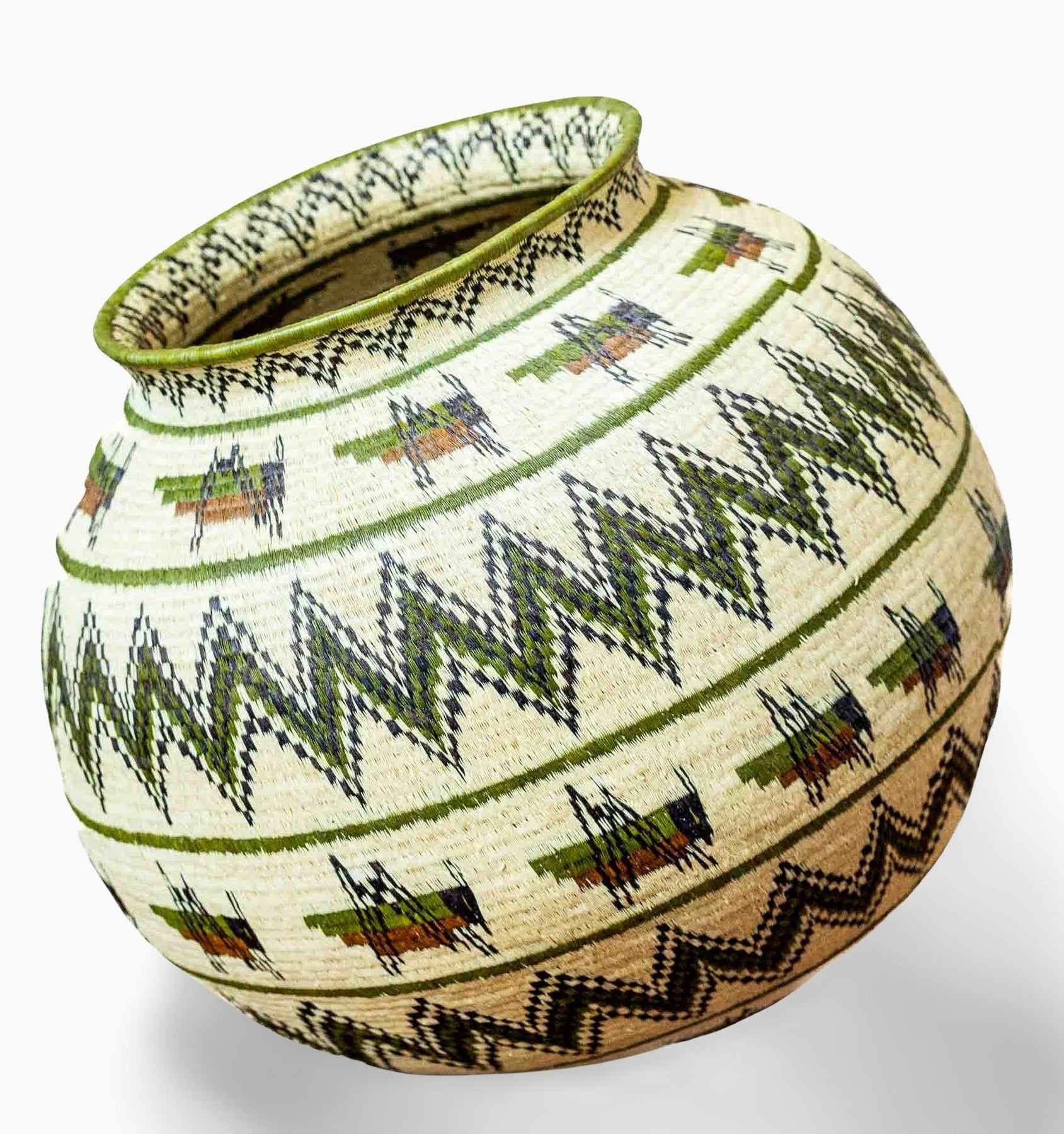 Inspired by the rainforest and by pre-Colombian body painting, each basket is a dialogue between tradition and the natural world. Weavers stitch with fine needles and the most supple fibers of the werregue and naguala palms—materials prepared, softened, and dyed with pigments drawn from seeds, roots, and leaves. Months, and often years, go into a single piece, each coil revealing echoes of ancient pottery, wild plant life, and the patient rhythm of hand and thread.