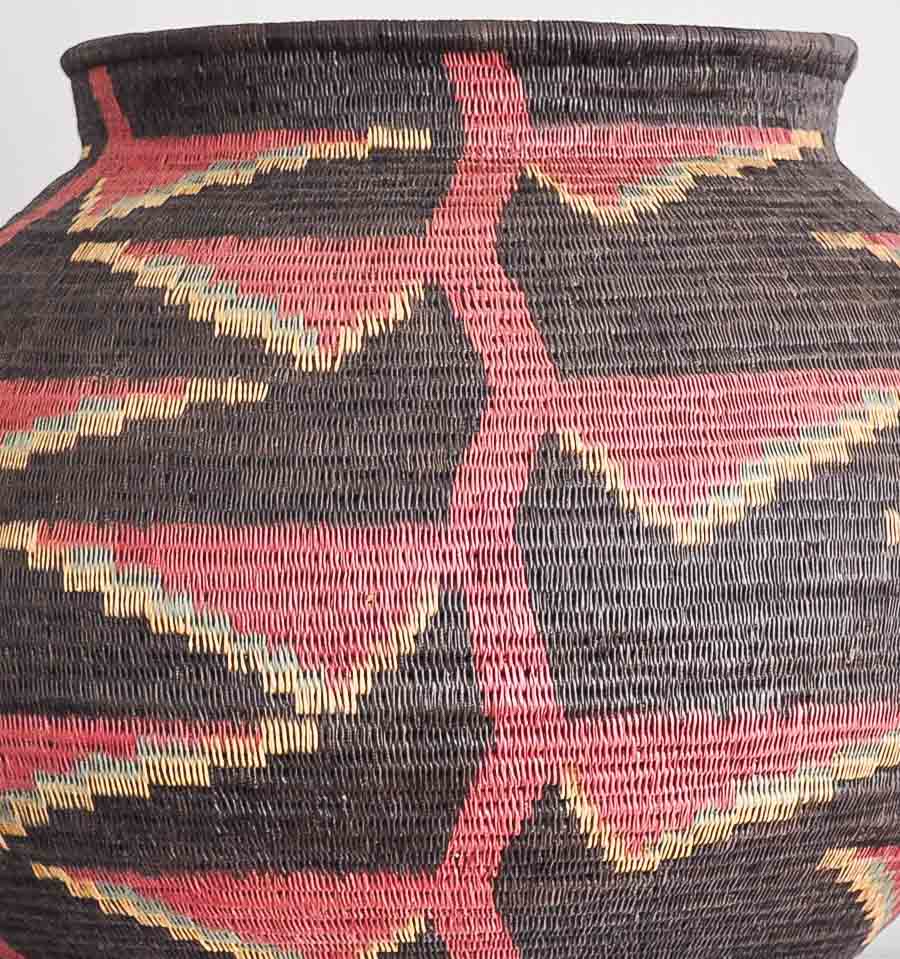 Heliconia On Black Wounaan Basket – geometric motif – woven basket – baskets – handwoven in Panama