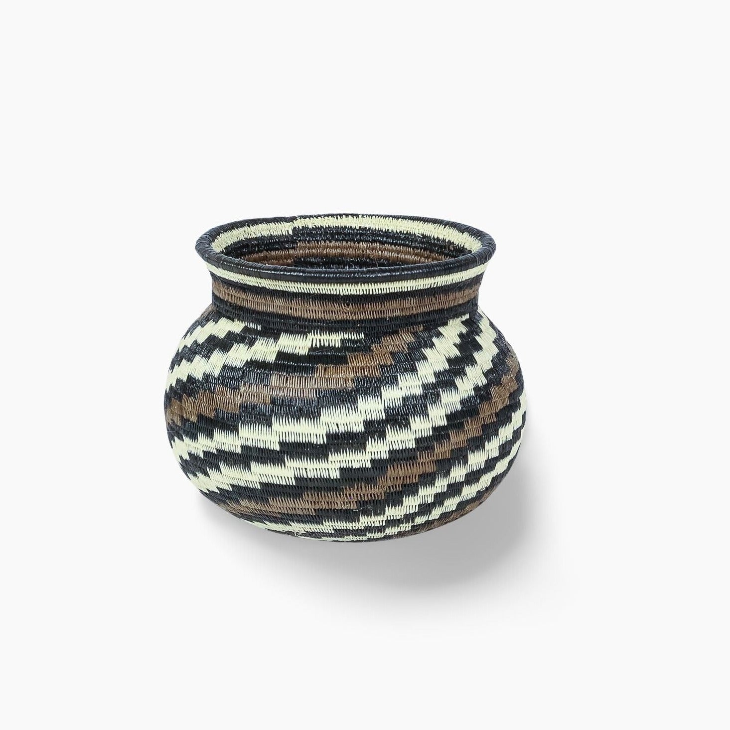 A finely detailed houndstooth pattern wraps this mini basket with visual texture and movement. The repeated motif creates a refined, architectural feel.