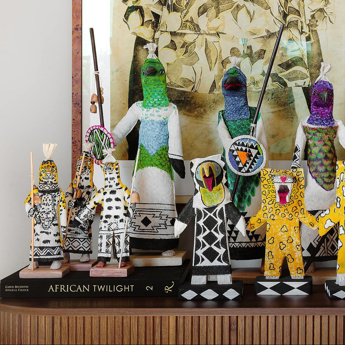 Carved from lightweight balsa wood, every doll is dressed in yanchama, a natural bark fiber painted with bold geometric symbols. Natural pigments in black, white, red, and yellow give each figure its character, while families and artists collaborate on the designs, deciding its size, style, and meaning. Once crafted exclusively by men, today women also take part in their creation, ensuring the tradition continues across generations.