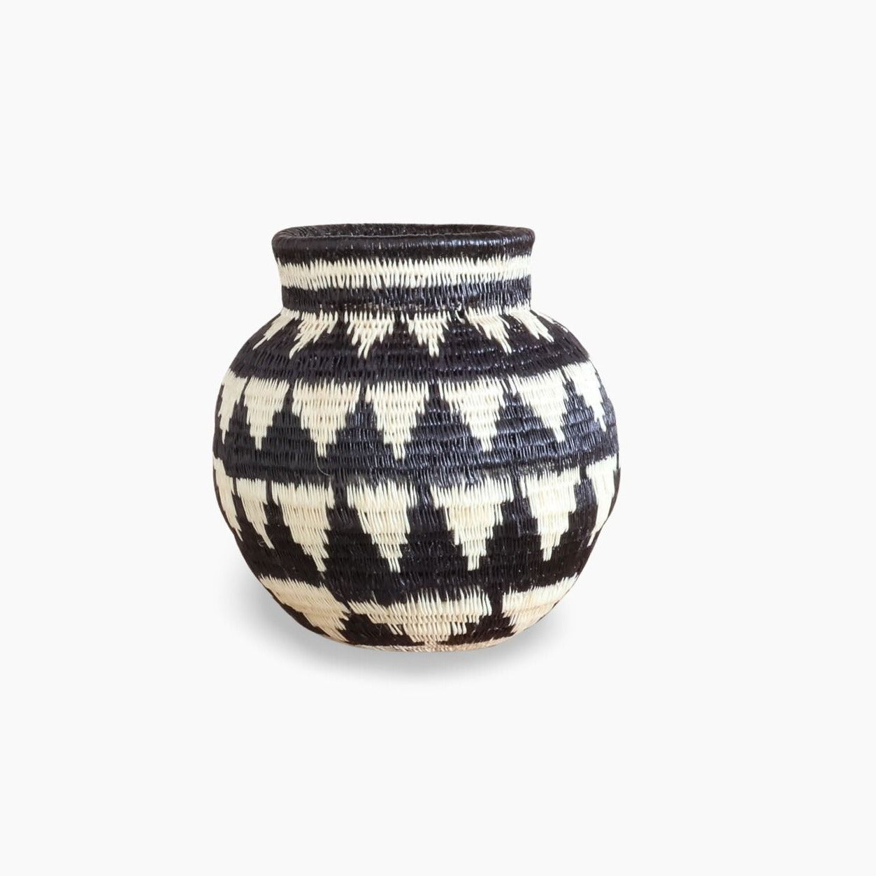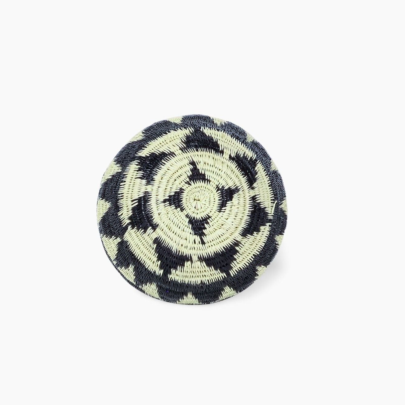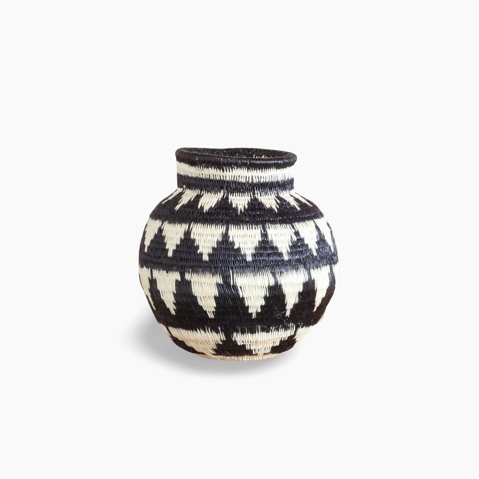 Sharp ivory forms rise rhythmically against a dark ground in this sculptural mini basket. The repeating motif creates a strong architectural presence.