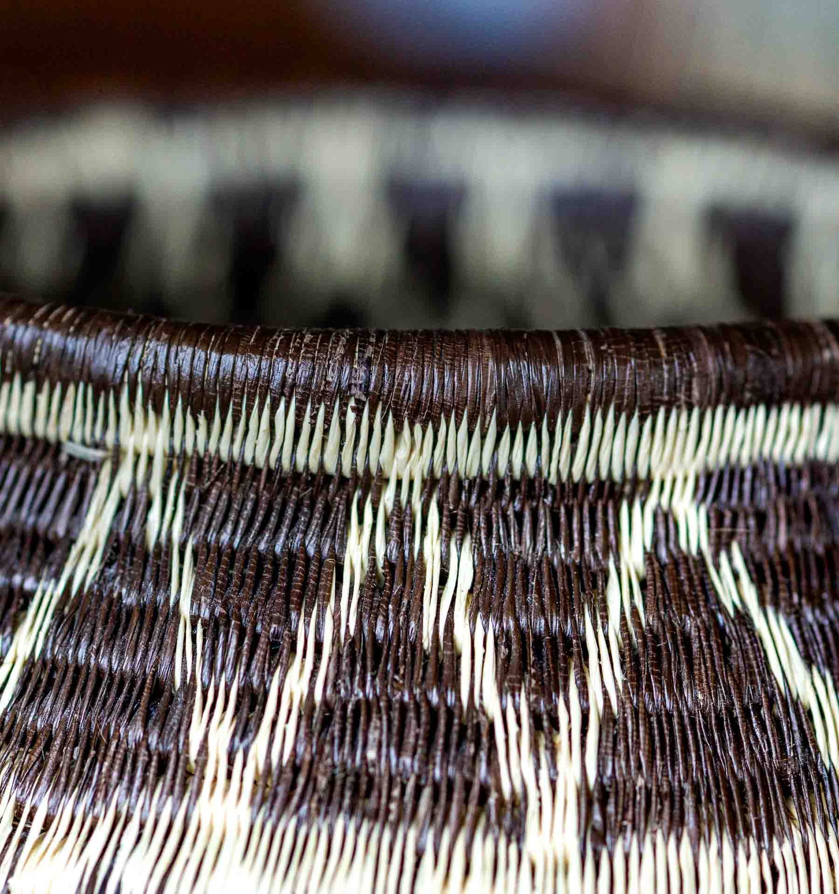 Indigenous Panamanian basket weaving close-up showing palm fiber stitches